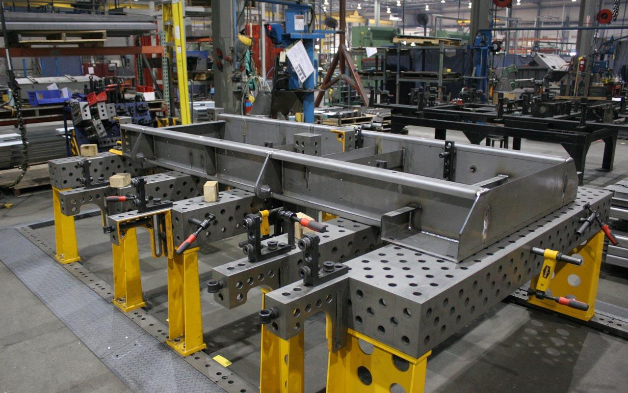 三維柔性焊接平臺工裝的主要特點就是從平臺到附件都是標準孔沒有傳統的螺紋或t型槽,配合快速鎖銷就能使裝配變得更加快捷方便,定位更精確。